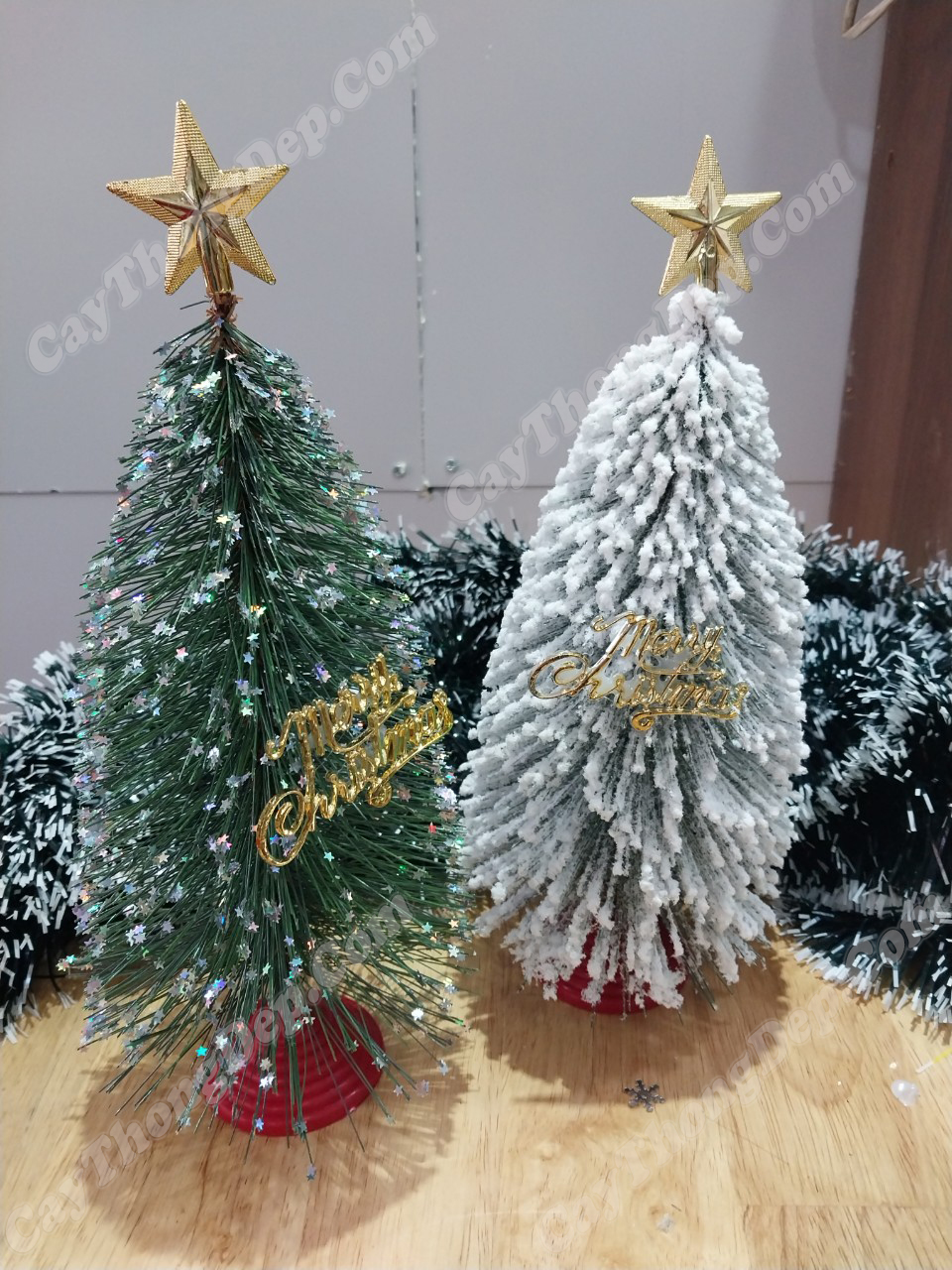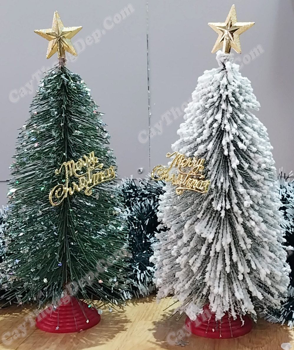 Cây thông mini dùng trang trí bàn làm việc, quầy lễ tân… làm điểm nhấn cho ngày noel thêm sang trọng.