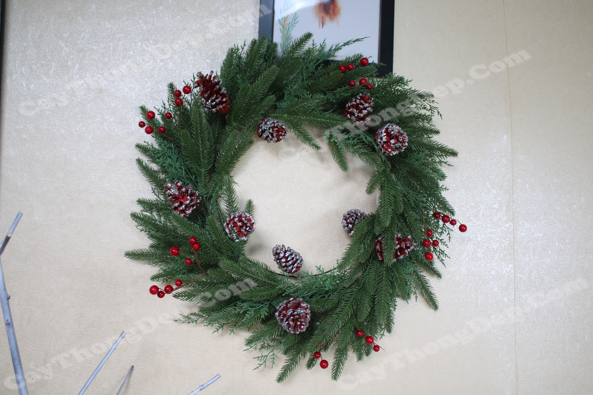 | VÒNG HOA PE 2 LOẠI LÁ PHỦ TUYẾT 50CM | 50CM | 280,000đ |